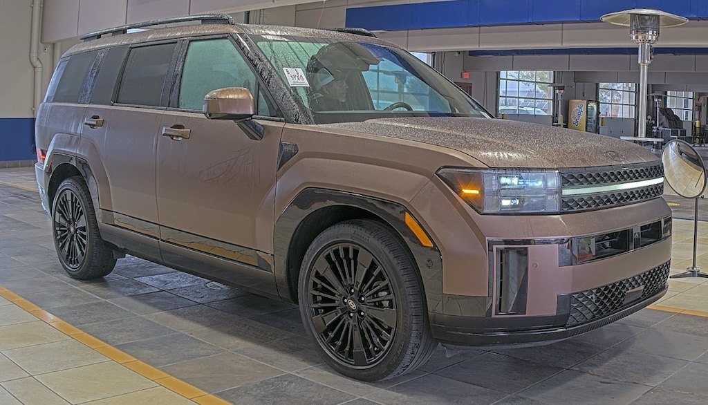 ** HYUNDAI CERTIFIED **, ** NAVIGATION / NAVI / GPS **, ** PANORAMIC SUNROOF / PANO ROOF **, ** MOONROOF / SUNROOF **, ** LEATHER **, ** CRUISE CONTROL **, ** ALLOY WHEELS **, ** ALL WHEEL DRIVE / AWD **, **BLUETOOTH**, **BACK UP CAMERA**, **STREAMING AUDIO**, **PUSH BUTTON START**, Santa Fe Hybrid Calligraphy, 4D Sport Utility, I4, 6-Speed Automatic with Shiftronic, AWD, Earthy Brass Matte, Black Leather, 12 Speakers, 3.510 Axle Ratio, 3rd row seats: bench, 4-Wheel Disc Brakes, ABS brakes, Air Conditioning, Alloy wheels, AM/FM radio: SiriusXM, Apple CarPlay & Android Auto, Auto High-beam Headlights, Auto-dimming Rear-View mirror, Automatic temperature control, Brake assist, Bumpers: body-color, Cargo Blocks, Carpeted Floor Mats, Delay-off headlights, Driver door bin, Driver vanity mirror, Dual front impact airbags, Dual front side impact airbags, Electronic Stability Control, Emergency communication system, Exterior Parking Camera Rear, First Aid Kit, Four wheel independent suspension, Front anti-roll bar, Front Bucket Seats, Front Center Armrest, Front dual zone A/C, Front reading lights, Fully automatic headlights, Garage door transmitter: HomeLink, Heads-Up Display, Heated & Ventilated Front Bucket Seats, Heated door mirrors, Heated front seats, Heated rear seats, Heated steering wheel, Illuminated entry, Knee airbag, Leather steering wheel, Low tire pressure warning, Memory seat, Navigation System, Occupant sensing airbag, Option Group 01, Outside temperature display, Overhead airbag, Overhead console, Panic alarm, Passenger door bin, Passenger vanity mirror, Power door mirrors, Power driver seat, Power Liftgate, Power moonroof, Power passenger seat, Power steering, Power windows, Quilted Premium Nappa Leather Seat Trim, Radio: AM/FM/HD Bose Premium Audio System, Rain sensing wipers, Rear anti-roll bar, Rear side impact airbag, Rear window defroster, Rear window wiper, Remote keyless entry, Roadside Assistance Kit, Security system, Speed control, Speed-sensing steering, Split folding rear seat, Spoiler, Steering wheel mounted audio controls, Tachometer, Telescoping steering wheel, Tilt steering wheel, Traction control, Trip computer, Turn signal indicator mirrors, Variably intermittent wipers, Ventilated front seats, Wheels: 20" x 8.5J Unique Dark Finish Alloy.
