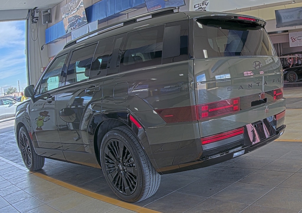 ** HYUNDAI CERTIFIED **, ** NAVIGATION / NAVI / GPS **, ** PANORAMIC SUNROOF / PANO ROOF **, ** LEATHER **, ** CRUISE CONTROL **, ** ALLOY WHEELS **, **BLUETOOTH**, **BACK UP CAMERA**, **STREAMING AUDIO**, **PUSH BUTTON START**, Santa Fe Hybrid Calligraphy, 4D Sport Utility, I4, 6-Speed Automatic with Shiftronic, FWD, Rockwood Green, Gray Leather, 12 Speakers, 3.510 Axle Ratio, 3rd row seats: bench, 4-Wheel Disc Brakes, ABS brakes, Air Conditioning, Alloy wheels, AM/FM radio: SiriusXM, Apple CarPlay & Android Auto, Auto High-beam Headlights, Auto-dimming Rear-View mirror, Automatic temperature control, Brake assist, Bumpers: body-color, Cargo Organizer, Carpeted Floor Mats, Delay-off headlights, Driver door bin, Driver vanity mirror, Dual front impact airbags, Dual front side impact airbags, Electronic Stability Control, Emergency communication system, Exterior Parking Camera Rear, First Aid Kit, Four wheel independent suspension, Front anti-roll bar, Front Bucket Seats, Front Center Armrest, Front dual zone A/C, Front reading lights, Fully automatic headlights, Garage door transmitter: HomeLink, Heads-Up Display, Heated & Ventilated Front Bucket Seats, Heated door mirrors, Heated front seats, Heated rear seats, Heated steering wheel, Illuminated entry, Knee airbag, Leather steering wheel, Low tire pressure warning, Memory seat, Navigation System, Occupant sensing airbag, Option Group 01, Outside temperature display, Overhead airbag, Overhead console, Panic alarm, Passenger door bin, Passenger vanity mirror, Power door mirrors, Power driver seat, Power Liftgate, Power moonroof, Power passenger seat, Power steering, Power windows, Quilted Premium Nappa Leather Seat Trim, Radio: AM/FM/HD Bose Premium Audio System, Rain sensing wipers, Rear anti-roll bar, Rear side impact airbag, Rear window defroster, Rear window wiper, Remote keyless entry, Roadside Assistance Kit, Security system, Speed control, Speed-sensing steering, Split folding rear seat, Spoiler, Steering wheel mounted audio controls, Tachometer, Telescoping steering wheel, Tilt steering wheel, Traction control, Trip computer, Turn signal indicator mirrors, Variably intermittent wipers, Ventilated front seats, Wheels: 20" x 8.5J Unique Dark Finish Alloy.