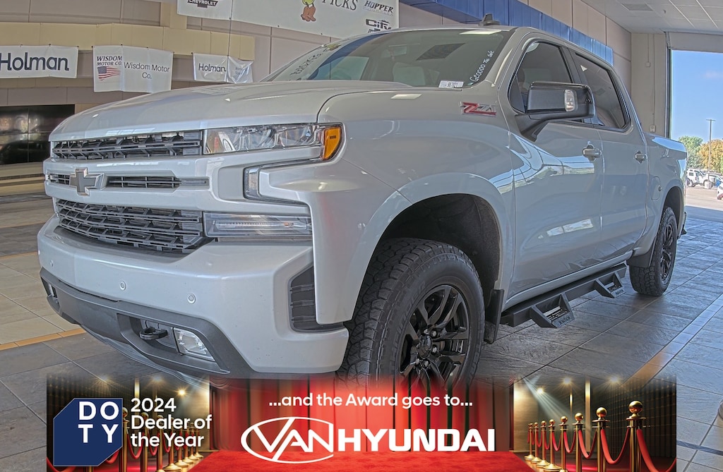 ** CRUISE CONTROL **, ** ALLOY WHEELS **, ** 4X4 / 4 WHEEL DRIVE **, **BLUETOOTH**, **BACK UP CAMERA**, **STREAMING AUDIO**, **PUSH BUTTON START**, Silverado 1500 RST, 4D Crew Cab, EcoTec3 5.3L V8, 8-Speed Automatic, 4WD, Silver Ice Metallic, Gideon/Very Dark Atmosphere Cloth, 10-Way Power Driver Seat w/Lumbar, 12-Volt Rear Auxiliary Power Outlet, 120-Volt Bed Mounted Power Outlet, 120-Volt Instrument Panel Power Outlet, 170 Amp Alternator, 2 USB Ports, 2 USB Ports (First Row), 220 Amps Alternator, 3.23 Rear Axle Ratio, 4-Way Manual Driver Seat Adjuster, 4-Wheel Disc Brakes, 4.2" Diagonal Color Display Driver Info Center, 40/20/40 Front Split-Bench Seat, 6 Speakers, 6-Speaker Audio System, ABS brakes, Air Conditioning, All-Star Edition, All-Weather Floor Liner (LPO) (AAK), Alloy wheels, AM/FM radio, Apple CarPlay/Android Auto, Auxiliary External Transmission Oil Cooler, Bed Protection Package, Bluetooth® For Phone, Body Color Grille, Brake assist, Bumpers: body-color, Chevrolet Connected Access, Chevrolet w/4G LTE, Chevytec Spray-On Black Bedliner, Cloth Rear Seat w/Storage Package, Cloth Seat Trim, Color-Keyed Carpeting Floor Covering, Compass, Convenience Package, Convenience Package II, Convenience Package w/Buckets Seats, Deep-Tinted Glass, Delay-off headlights, Driver door bin, Driver vanity mirror, Dual Exhaust w/Polished Outlets, Dual front impact airbags, Dual front side impact airbags, Dual-Zone Automatic Climate Control, Electric Rear-Window Defogger, Electrical Lock Control Steering Column, Electronic Cruise Control, Electronic Stability Control, External Engine Oil Cooler, Floor Mounted Console, Front anti-roll bar, Front Bucket Seats, Front Center Armrest w/Storage, Front fog lights, Front Frame-Mounted Black Recovery Hooks, Front LED Fog Lamps, Front reading lights, Front Rubberized Vinyl Floor Mats, Front wheel independent suspension, Fully automatic headlights, HD Radio, HD Rear Vision Camera, Heated door mirrors, Heated Driver & Front Passenger Seats, Heated Steering Wheel, Heavy Duty Suspension, Heavy-Duty Rear Locking Differential, High Capacity Air Filter, High Gloss Black Mirror Caps, Hill Descent Control, Hitch Guidance, Illuminated entry, Integrated Trailer Brake Controller, Keyless Open & Start, Lane Change Alert w/Side Blind Zone Alert, Leather Wrapped Steering Wheel, LED Cargo Area Lighting, Low tire pressure warning, Manual Tilt Wheel Steering Column, Manual Tilt/Telescoping Steering Column, Occupant sensing airbag, Off-Road Suspension, OnStar & Chevrolet Connected Services Capable, Outside temperature display, Overhead airbag, Overhead console, Panic alarm, Passenger door bin, Passenger vanity mirror, Perimeter Lighting, Power Door Locks, Power door mirrors, Power Front Windows w/Driver Express Up/Down, Power Front Windows w/Passenger Express Down, Power Rear Windows w/Express Down, Power Sliding Rear Window w/Rear Defogger, Power steering, Power windows, Preferred Equipment Group 1SP, Premium audio system: Chevrolet Infotainment System 3, Premium Bose 7-Speaker Sound System, Radio data system, Radio: Chevrolet Infotainment 3 Plus System, Radio: Chevrolet Infotainment 3 System, Rear 60/40 Folding Bench Seat (Folds Up), Rear Cross Traffic Alert, Rear Dual USB Charging-Only Ports, Rear reading lights, Rear Rubberized-Vinyl Floor Mats, Rear step bumper, Rear Vision Camera, Rear Wheelhouse Liners, Rear window defroster, Remote keyless entry, Remote Vehicle Starter System, Safety Package, Security system, Single-Zone Manual/Semi-Automatic Air Conditioning, SiriusXM Radio, Speed control, Speed-sensing steering, Split folding rear seat, Steering Wheel Audio Controls, Steering wheel mounted audio controls, Tachometer, Theft Deterrent System (Unauthorized Entry), Tilt steering wheel, Traction control, Trailering Package, Trip computer, Ultrasonic Front & Rear Park Assist, Universal Home Remote, Urethane Steering Wheel, Variably intermittent wipers, Voltmeter, Wheels: 18" x 8.5" Bright Sil