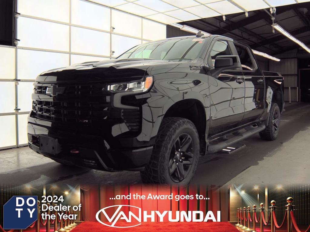 ** CRUISE CONTROL **, ** ALLOY WHEELS **, ** 4X4 / 4 WHEEL DRIVE **, **BLUETOOTH**, **BACK UP CAMERA**, **STREAMING AUDIO**, **PUSH BUTTON START**, Silverado 1500 LT Trail Boss, 4D Crew Cab, EcoTec3 5.3L V8, 10-Speed Automatic, 4WD, Black, Black Cloth, 10-Way Power Driver Seat w/Lumbar, 12.3" Multicolor Reconfigurable Digital Display, 120-Volt Bed Mounted Power Outlet, 120-Volt Instrument Panel Power Outlet, 170 Amp Alternator, 2 USB Data Ports, 220 Amp Alternator, 3.23 Rear Axle Ratio, 4-Wheel Disc Brakes, 4" Black Round Assist Steps (LPO), 40/20/40 Front Split-Bench Seat, 6 Speakers, 6-Speaker Audio System, ABS brakes, Air Conditioning, All-Weather Floor Liner (LPO) (AAK), Alloy wheels, AM/FM radio: SiriusXM with 360L, Apple CarPlay/Android Auto, Auto High-beam Headlights, Auto-Locking Rear Differential, Automatic Emergency Braking, Automatic temperature control, Auxiliary External Transmission Oil Cooler, Black Name Plates (LPO), Bluetooth® For Phone, Brake assist, Chevrolet Connected Access Capable, Chevytec Spray-On Black Bedliner, Cloth Seat Trim, Color-Keyed Carpeting Floor Covering, Compass, Convenience Package, Dark Essentials Package (LPO), Deep-Tinted Glass, Delay-off headlights, Driver door bin, Driver vanity mirror, Dual Exhaust w/Polished Outlets, Dual front impact airbags, Dual front side impact airbags, Dual Rear USB Ports (Charge Only), Dual-Zone Automatic Climate Control, Electric Rear-Window Defogger, Electrical Steering Column Lock, Electronic Cruise Control, Electronic Stability Control, Electronic Transmission Range Selector Shifter, External Engine Oil Cooler, EZ Lift Power Lock & Release Tailgate, Floor Mounted Center Console, Following Distance Indicator, Forward Collision Alert, Front anti-roll bar, Front Bucket Seats, Front Center Armrest w/Storage, Front dual zone A/C, Front fog lights, Front LED Fog Lamps, Front License Plate Kit, Front Pedestrian Braking, Front reading lights, Front wheel independent suspension, Fully automatic headlights, HD Rear Vision Camera, Heated door mirrors, Heated Driver & Front Outboard Passenger Seats, Heated front seats, Heated Power-Adjustable Outside Mirrors, Heated Steering Wheel, Heated steering wheel, Heavy-Duty Air Filter, High Gloss Black Mirror Caps, Hill Descent Control, Hitch Guidance, Illuminated entry, Inside Rear-View Mirror w/Tilt, IntelliBeam Automatic High Beam On/Off, Keyless Open & Start, Lane Keep Assist w/Lane Departure Warning, LED Cargo Area Lighting, Low tire pressure warning, Multi-Flex Tailgate, Not Equipped w/Steering Column Lock, Occupant sensing airbag, OnStar & Chevrolet Connected Services Capable, Outside temperature display, Overhead airbag, Overhead console, Panic alarm, Passenger door bin, Passenger vanity mirror, Performance Red Recovery Hooks, Power door mirrors, Power driver seat, Power Front Windows w/Driver Express Up/Down, Power Front Windows w/Passenger Express Down, Power Rear Windows w/Express Down, Power steering, Power windows, Preferred Equipment Group 2LT, Premium audio system: Chevrolet Infotainment 3 Premium, Protection Package, Radio data system, Radio: Chevrolet Infotainment 3 Premium System, Rear 60/40 Folding Bench Seat (Folds Up), Rear reading lights, Rear step bumper, Rear Wheelhouse Liners, Rear window defroster, Remote keyless entry, Remote Vehicle Starter System, Security system, SiriusXM w/360L, Speed control, Speed-sensing steering, Split folding rear seat, Standard Tailgate, Steering Wheel Audio Controls, Steering wheel mounted audio controls, Suspension Package, Tachometer, Telescoping steering wheel, Theft Deterrent System (Unauthorized Entry), Tilt steering wheel, Traction control, Trailering Package, Trip computer, Variably intermittent wipers, Voltmeter, Wheels: 18" x 8.5" Black Painted Aluminum, Wi-Fi Hot Spot Capable, Wireless Charging, Wireless Phone Projection, Wrapped Steering Wheel.