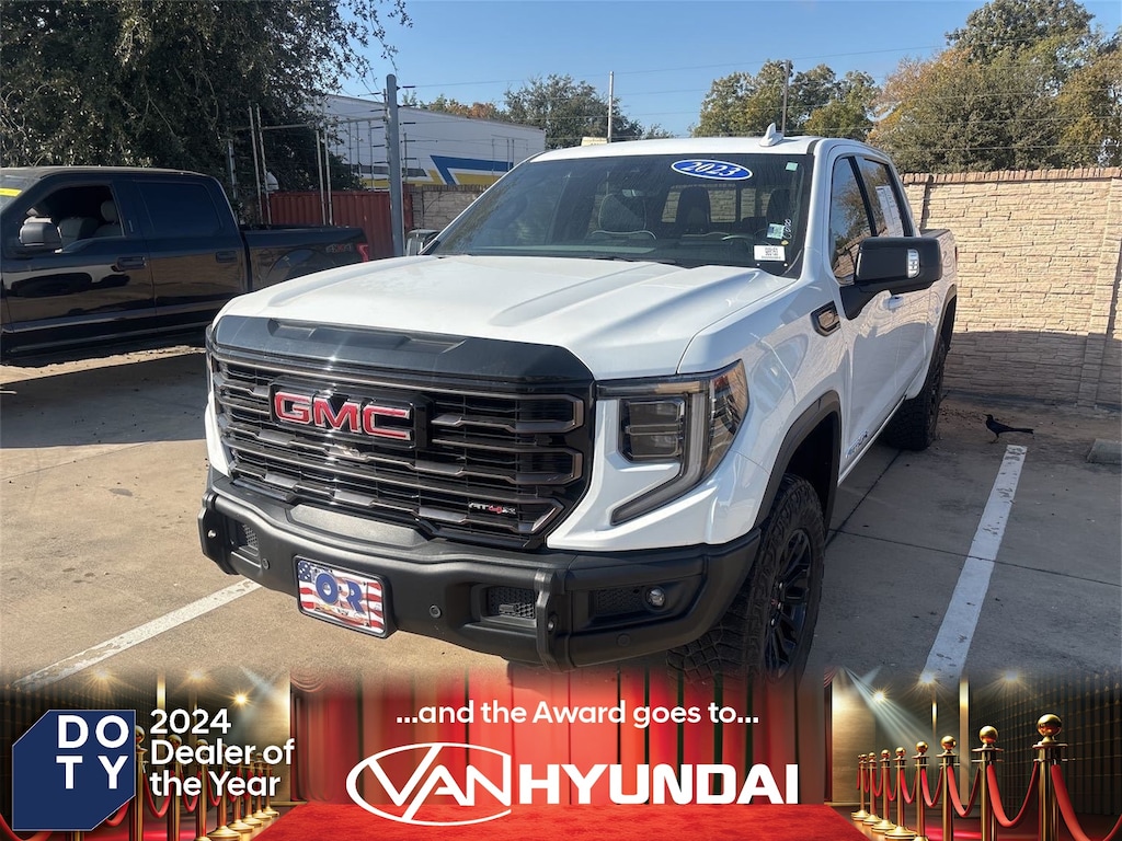 ** NAVIGATION / NAVI / GPS **, ** MOONROOF / SUNROOF **, ** LEATHER **, ** CRUISE CONTROL **, ** ALLOY WHEELS **, ** 4X4 / 4 WHEEL DRIVE **, **BLUETOOTH**, **BACK UP CAMERA**, **STREAMING AUDIO**, **PUSH BUTTON START**, Sierra 1500 AT4X, 4D Crew Cab, EcoTec3 6.2L V8, 10-Speed Automatic, 4WD, Summit White, Obsidian Rush Leather, 12 Speakers, 120-Volt Bed Mounted Power Outlet, 120-Volt Instrument Panel Power Outlet, 16-Way Power Driver Seat Adjuster w/Lumbar, 16-Way Power Passenger Seat Adjuster w/Lumbar, 2 Charge/Data USB Ports Inside Center Console, 2 Type-C Charge-Only Rear USB Ports, 2 USB Ports, 3.23 Rear Axle Ratio, 4-Wheel Disc Brakes, ABS brakes, Air Conditioning, Alloy wheels, AM/FM radio, Apple CarPlay/Android Auto, Auto High-beam Headlights, Auto-dimming door mirrors, Auto-dimming Rear-View mirror, Automatic Emergency Braking, Automatic temperature control, Bed View Camera, Bose Premium Series w/12-Speaker System, Brake assist, Buckle to Drive, Color-Keyed Carpeting Floor Covering, Compass, Deep-Tinted Glass, Delay-off headlights, Driver door bin, Driver Memory, Driver vanity mirror, Driver-Selectable Full-Locking Front Differential, Driver-Selectable Full-Locking Rear Differential, Dual front impact airbags, Dual front side impact airbags, Electric Rear-Window Defogger, Electrical Steering Column Lock, Electronic Stability Control, Emergency communication system: OnStar and GMC connected services capable, Floor-Mounted Center Console, Following Distance Indicator, Forward Collision Alert, Front anti-roll bar, Front Bucket Seats, Front Center Armrest, Front dual zone A/C, Front fog lights, Front Pedestrian Braking, Front Prem Floor Liners w/Removable Carpet Insert, Front Rainsensing Wipers, Front reading lights, Front wheel independent suspension, Full Grain Leather Seat Trim, Fully automatic headlights, Garage door transmitter, Genuine wood dashboard insert, Genuine wood door panel insert, Gloss Black Header w/Drk Nickel Grille Insert Bars, GMC Connected Access Capable, HD Surround Vision, Heads-Up Display, Heated 2nd Row Outboard Seats, Heated door mirrors, Heated Driver & Front Outboard Passenger Seating, Heated front seats, Heated rear seats, Heated steering wheel, Heavy-Duty Air Filter, Hill Descent Control, Hitch Guidance, Hitch Guidance w/Hitch View, Illuminated entry, In-Vehicle Trailering App, Integrated Trailer Brake Controller, IntelliBeam Automatic High Beam On/Off, Keyless Open & Start, Lane Keep Assist w/Lane Departure Warning, LED Cargo Area Lighting, Low tire pressure warning, Memory seat, Multicolor 15" Diagonal Head-Up Display, MultiPro Audio System by Kicker (LPO), Navigation System, Not Equipped w/Steering Column Lock, Occupant sensing airbag, Off-Road High Clearance Step (LPO), Off-Road Suspension, OnStar & GMC Connected Services Capable, Outside temperature display, Overhead airbag, Overhead console, Panic alarm, Passenger door bin, Passenger vanity mirror, Perimeter Lighting, Power Door Locks, Power door mirrors, Power driver seat, Power Front Passenger Windows w/Express Up/Down, Power Front Windows w/Driver Express Up/Down, Power moonroof, Power passenger seat, Power Rake & Telescoping Steering Column, Power Rear Windows w/Express Down, Power Sliding Rear Window w/Rear Defogger, Power steering, Power Sunroof, Power windows, Preferred Equipment Group 4SG, Premium audio system: GMC Infotainment System, Push Button Start, Radio data system, Radio: Premium GMC Infotainment Audio System, Rain sensing wipers, Rear Cross Traffic Braking, Rear Pedestrian Detection, Rear Prem Floor Liners w/Removable Carpet Insert, Rear reading lights, Rear seat center armrest, Rear step bumper, Rear Wheelhouse Liners, Rear window defroster, Remote keyless entry, Remote Vehicle Starter System, Safety Alert Seat, Security system, SiriusXM w/360L, Speed control, Speed-sensing steering, Split folding rear seat, Spray-On Pickup Bed Liner w/AT4X Logo, Steering Wheel Audio Controls, Steering wheel mounted a
