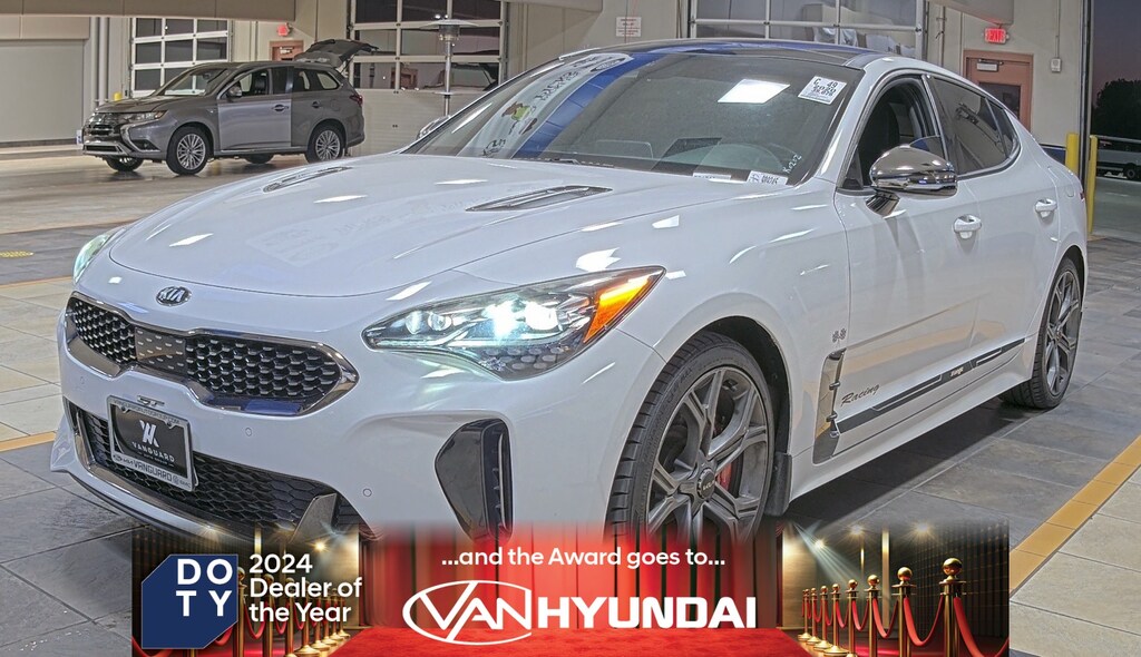 ** NAVIGATION / NAVI / GPS **, ** PANORAMIC SUNROOF / PANO ROOF **, ** MOONROOF / SUNROOF **, ** LEATHER **, ** CRUISE CONTROL **, ** ALLOY WHEELS **, **BLUETOOTH**, **BACK UP CAMERA**, **STREAMING AUDIO**, **PUSH BUTTON START**, Stinger GT1, 4D Sedan, V6, 8-Speed Automatic, RWD, Snow White Pearl, Black Leather, 15 Speakers, 4-Wheel Disc Brakes, ABS brakes, Adaptive suspension, Air Conditioning, Alloy wheels, AM/FM radio: SiriusXM, Anti-whiplash front head restraints, Apple CarPlay & Android Auto, Auto High-beam Headlights, Auto tilt-away steering wheel, Auto-dimming door mirrors, Auto-dimming Rear-View mirror, Automatic temperature control, Brake assist, Bumpers: body-color, Compass, Delay-off headlights, Driver door bin, Driver vanity mirror, Dual front impact airbags, Dual front side impact airbags, Electronic Stability Control, Emergency communication system: UVO eServices, Exterior Parking Camera Rear, Four wheel independent suspension, Front anti-roll bar, Front Bucket Seats, Front Center Armrest, Front dual zone A/C, Front reading lights, Fully automatic headlights, Garage door transmitter: HomeLink, Heated & Ventilated Front Bucket Seats, Heated door mirrors, Heated front seats, Illuminated entry, Knee airbag, Leather Seat Trim, Low tire pressure warning, Memory seat, Navigation System, Occupant sensing airbag, Outside temperature display, Overhead airbag, Overhead console, Panic alarm, Passenger door bin, Passenger vanity mirror, Power door mirrors, Power driver seat, Power moonroof, Power passenger seat, Power steering, Power windows, Radio: AM/FM/MP3/HD/SiriusXM harman/kardon Audio, Rain sensing wipers, Rear air conditioning, Rear anti-roll bar, Rear reading lights, Rear seat center armrest, Rear window defroster, Remote keyless entry, Security system, Speed control, Speed-sensing steering, Speed-Sensitive Wipers, Split folding rear seat, Sport steering wheel, Steering wheel memory, Steering wheel mounted audio controls, Tachometer, Telescoping steering wheel, Tilt steering wheel, Traction control, Trip computer, Turn signal indicator mirrors, Variably intermittent wipers, Ventilated front seats, Wheels: 19" x 8.0 Front & 19" x 8.5 Rear Alloy.